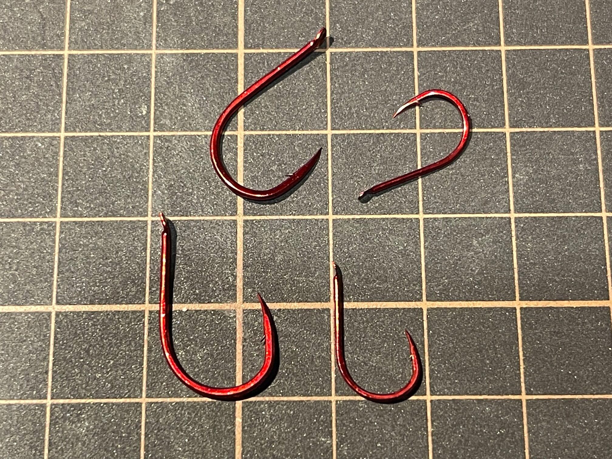 右がチヌチヌ鈎(赤)7号で左が3号です。