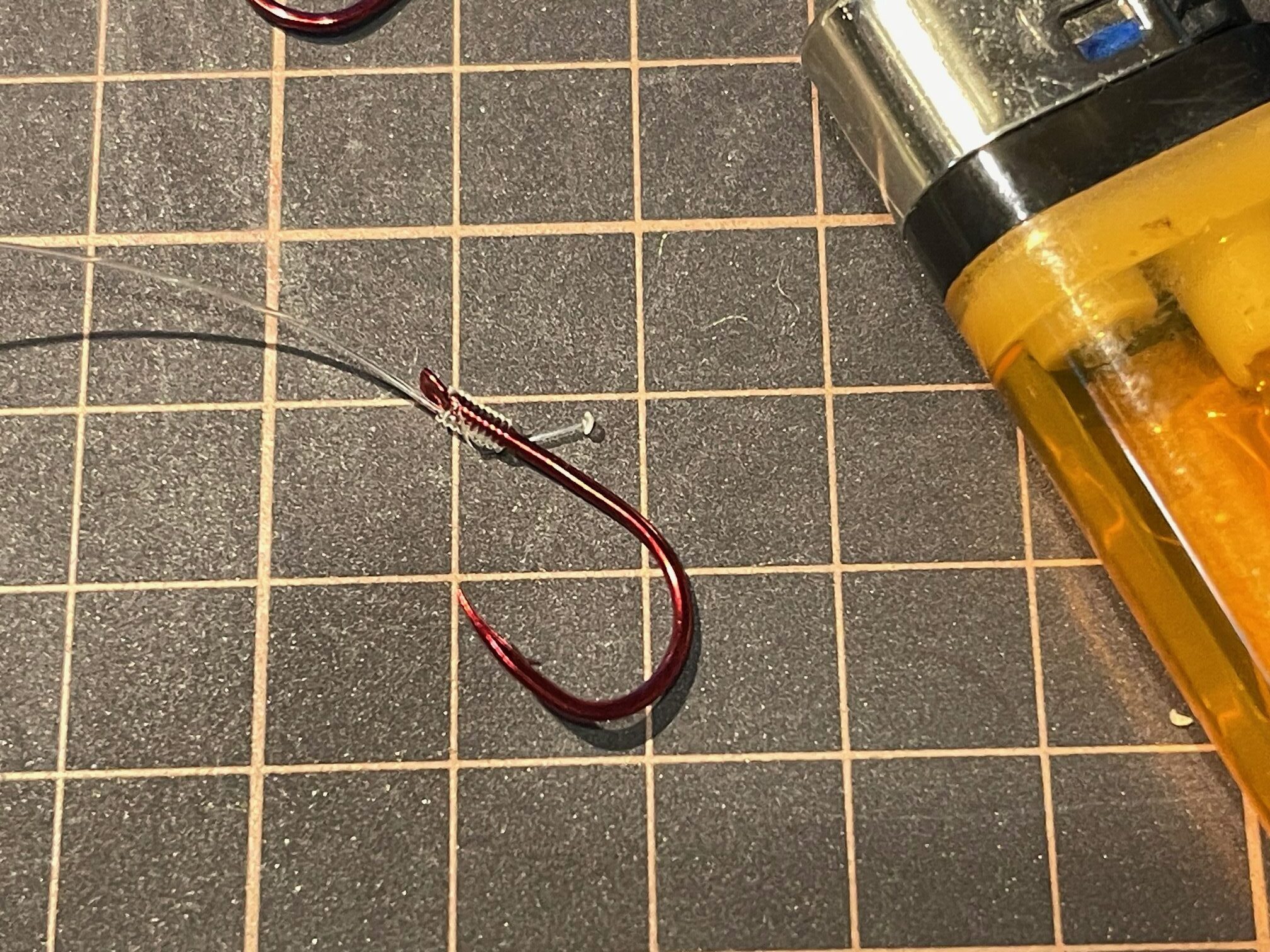 青物仕掛の場合は、ハリス3.5号以上で結び目先は、必ずライターで少し溶かします。