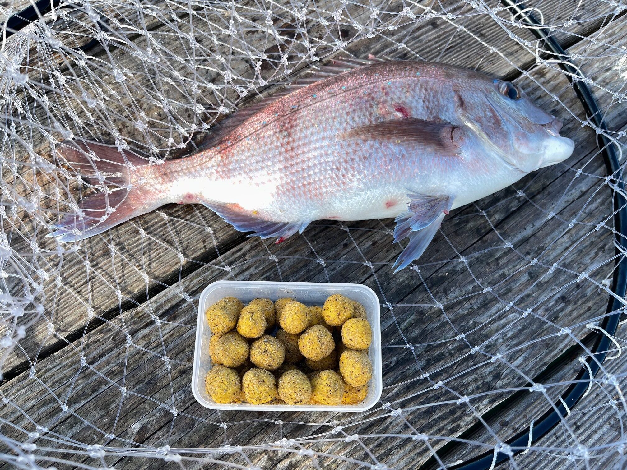 餌取りに見つからないモーニングでパパは、1番、ママは、2番で3匹づつ真鯛をGET!