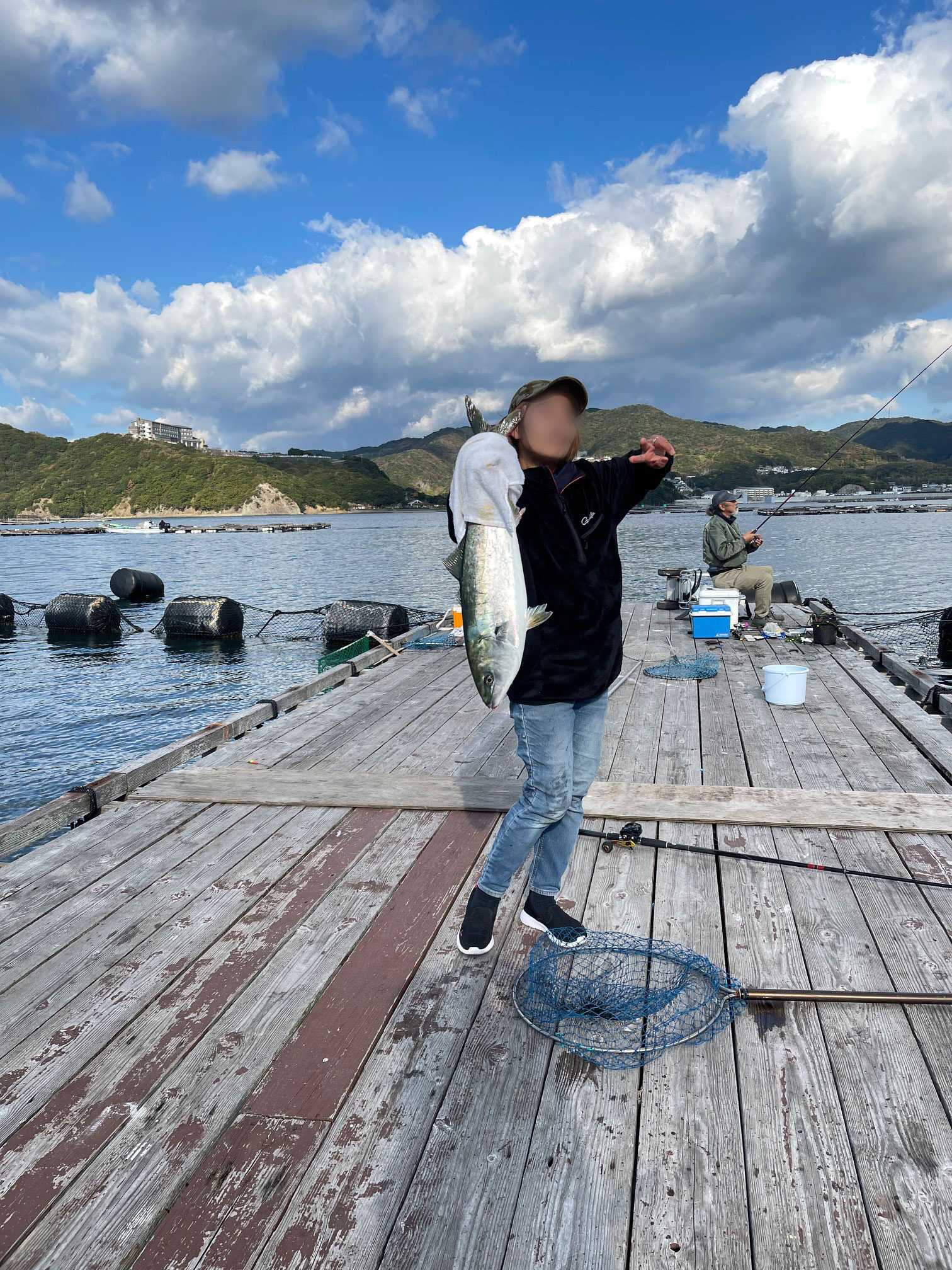 さて海上釣堀の脈仕掛では、軽いガン玉なのでオモリの重さで落とす感じでなく引きだして落とす感じになります。