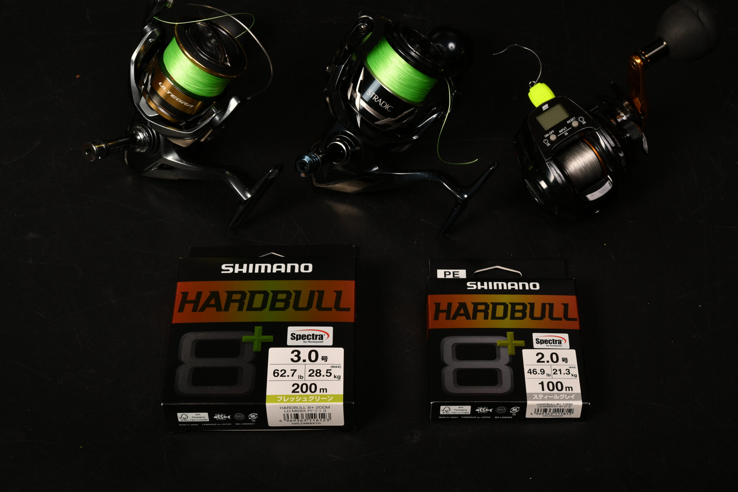 本日昼休みに3個のリールにSIMANO HARDBULL8+ を巻き直しました。