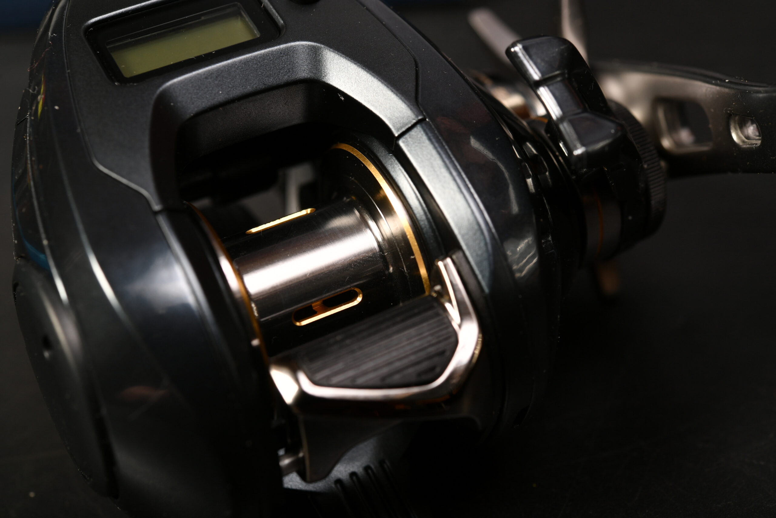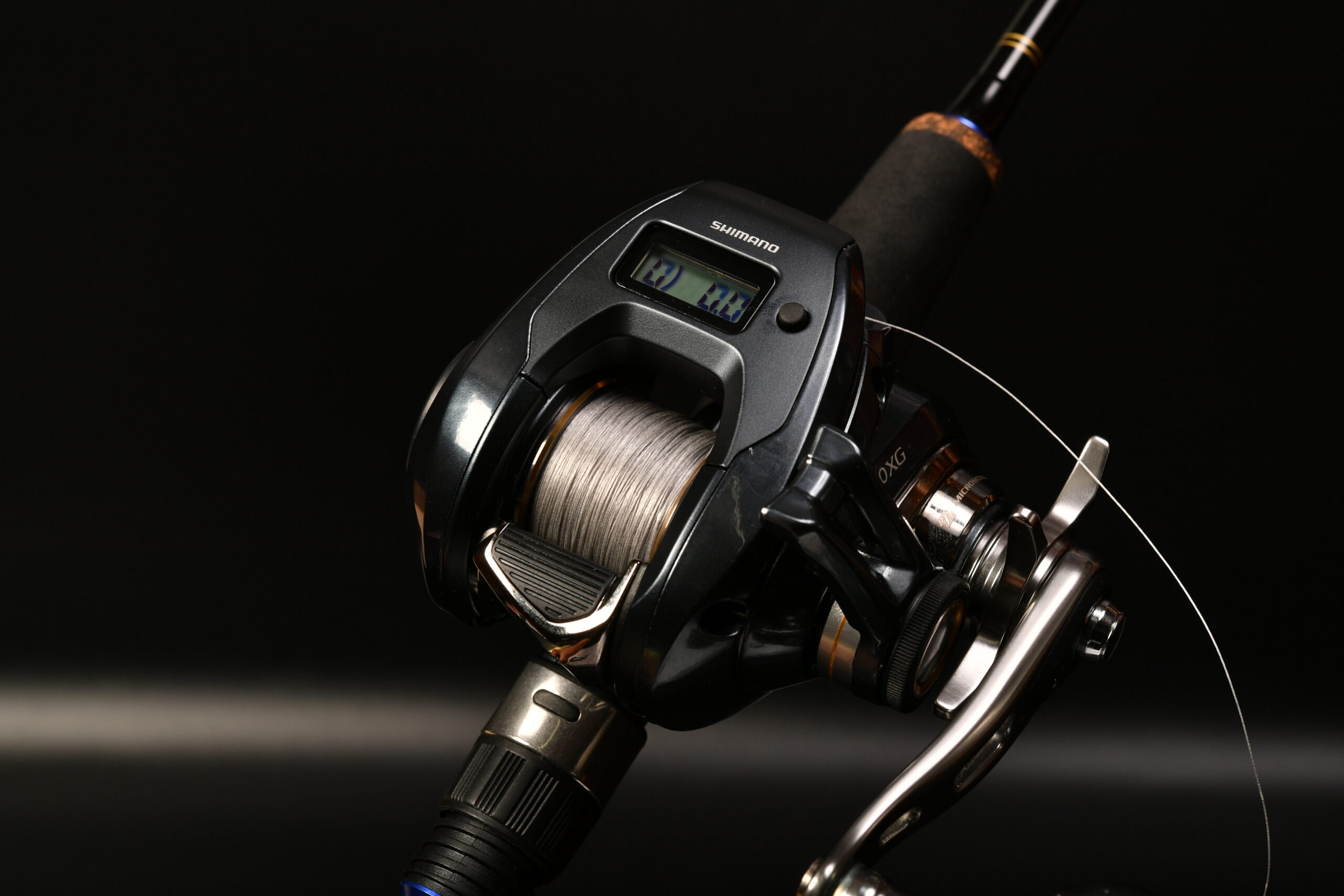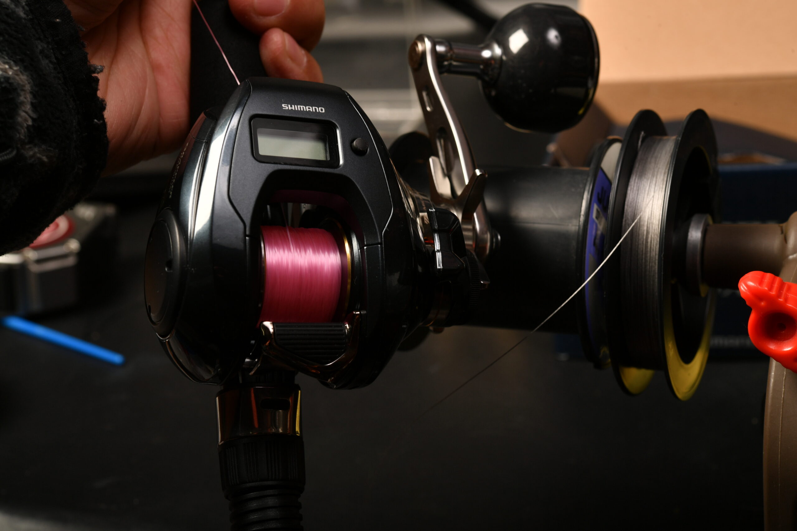 シマノ ハードブル PE2号を巻いて設定完了したと思います。