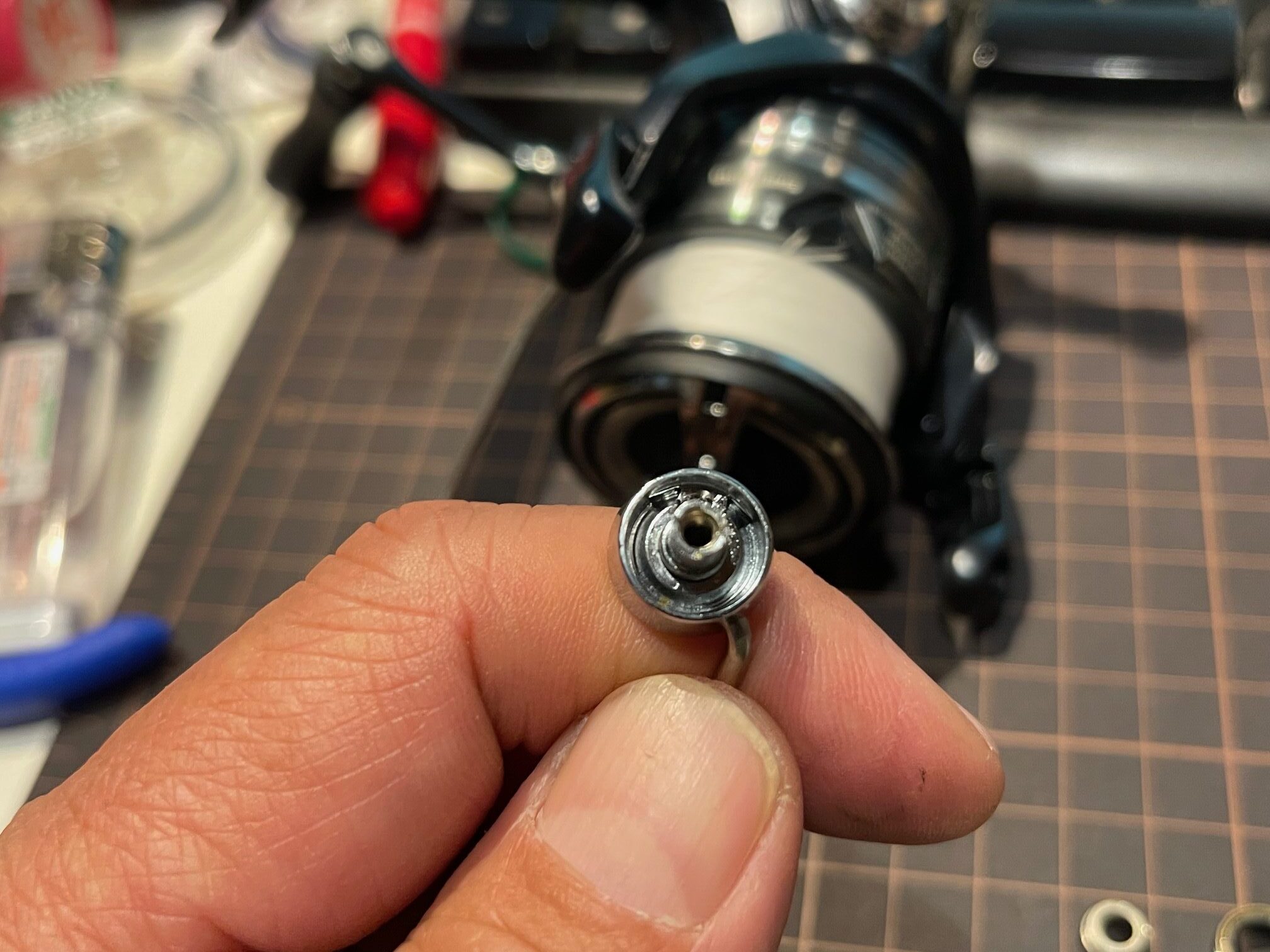 久々にママが地元埋立地用(サビキから落とし込みまで使う)に購入したシマノ 22 ミラベル 2500ですが海上釣堀のサーモン用で使おうと思い久々にライン巻き直しました。