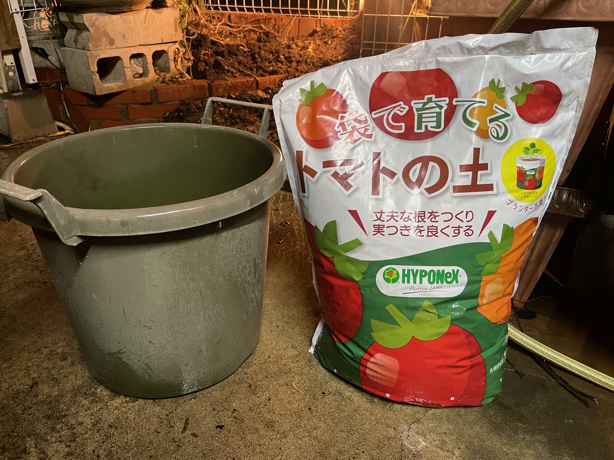 袋で育てるトマトの土をホームセンターで購入したのですが袋で育てるよりプランターの方が良いと思いココし植える事にしました。