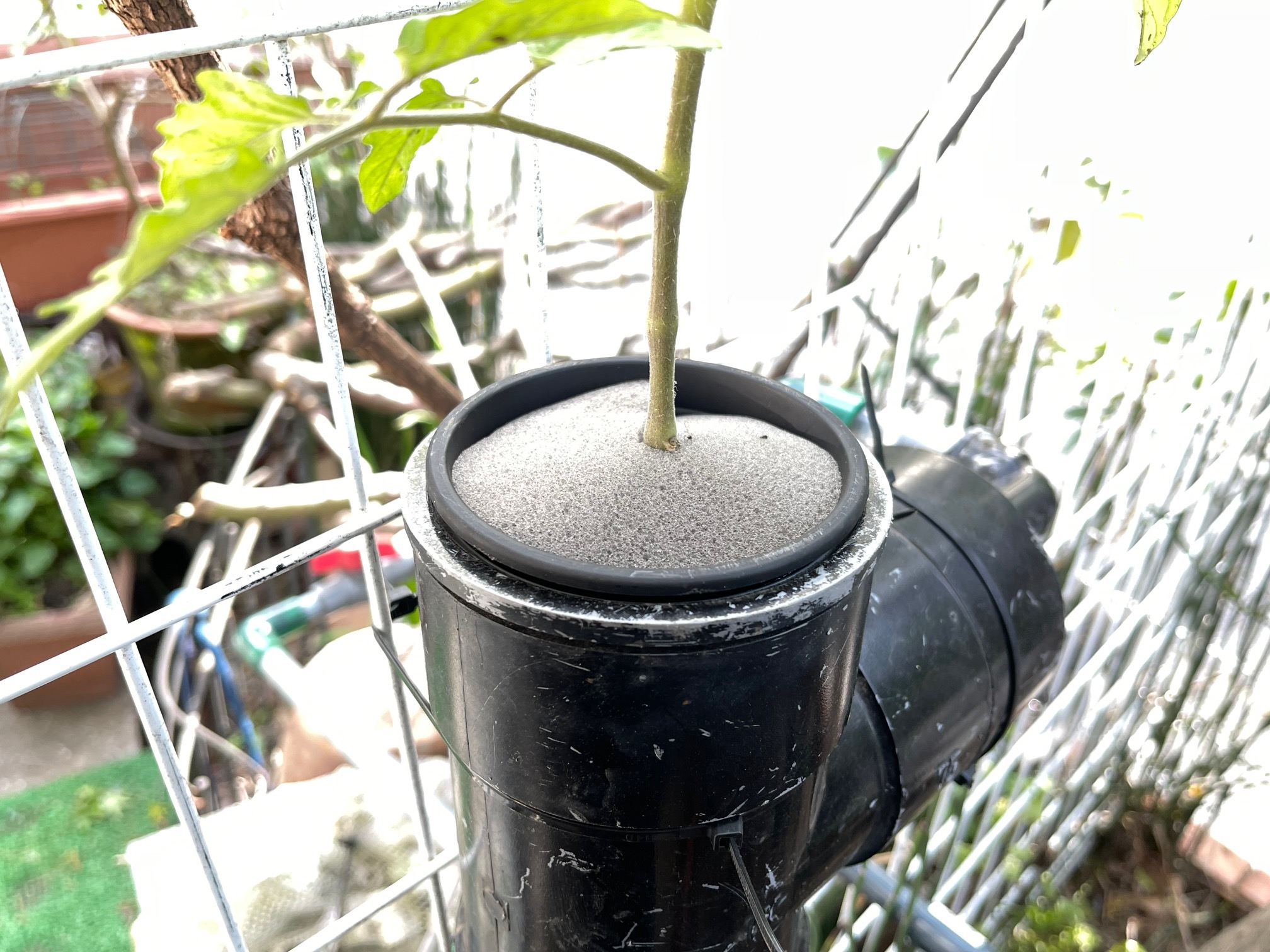 小さな池の濾過装置を利用してミニトマトの水耕栽培にチャレンジしてみます。