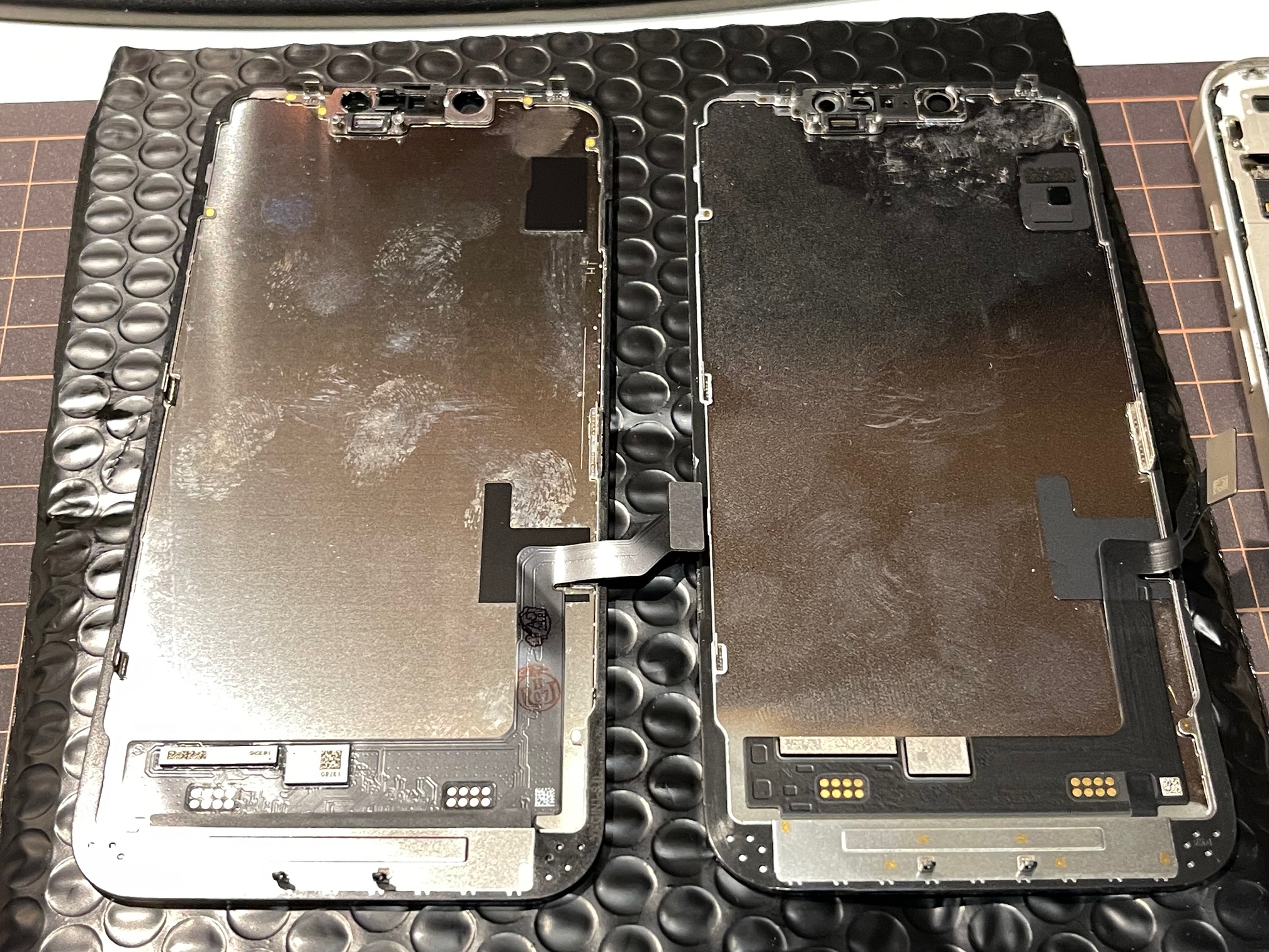 右が純正液晶パネル、左が今回購入した互換液晶パネル(インセル)