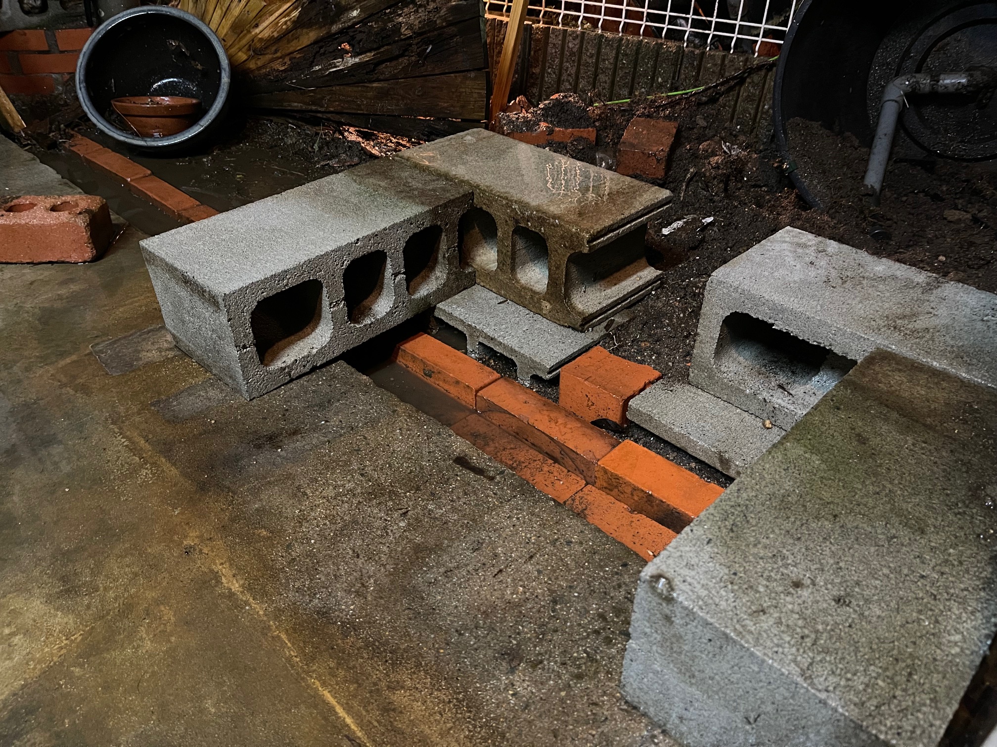これで腐った睡蓮鉢の台から物置への交換が完了しました。
