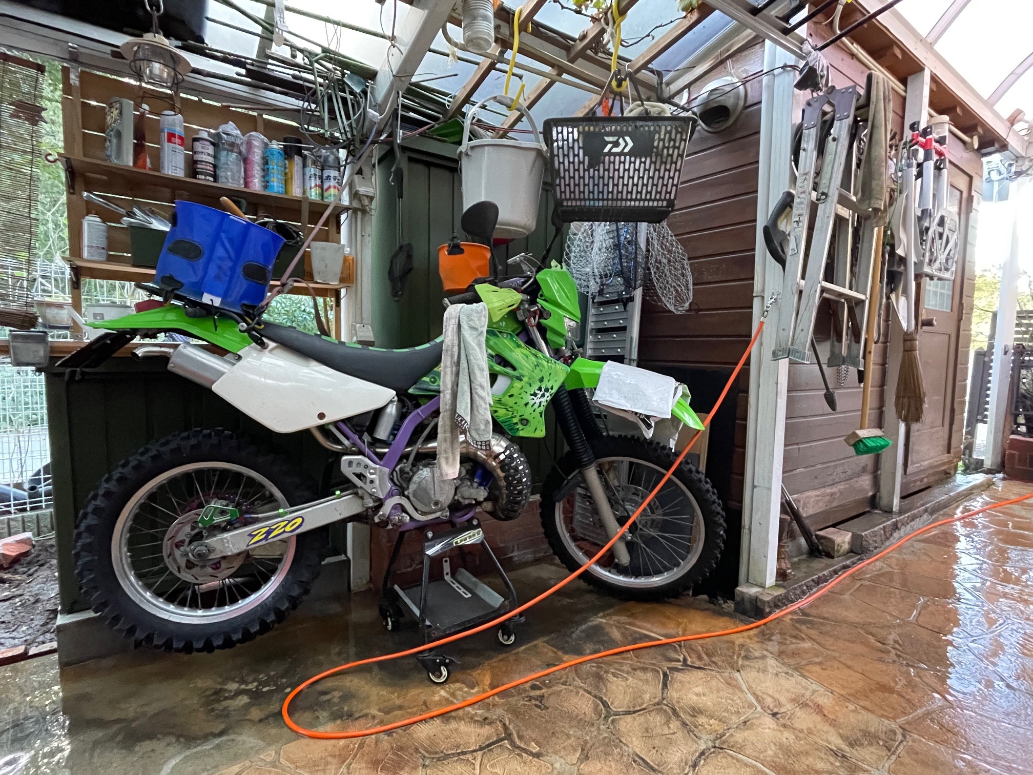 でも乗っていないKDX置いたらほぼ開けない物置です。