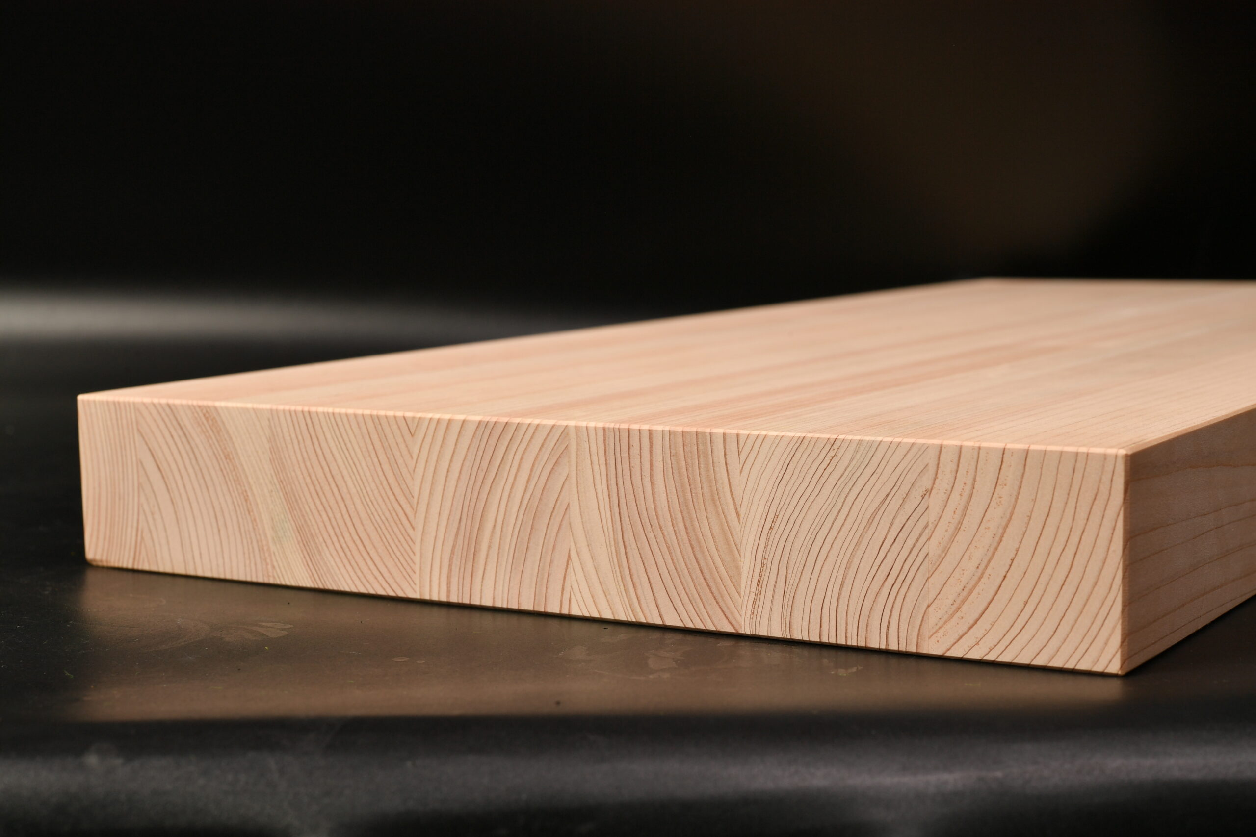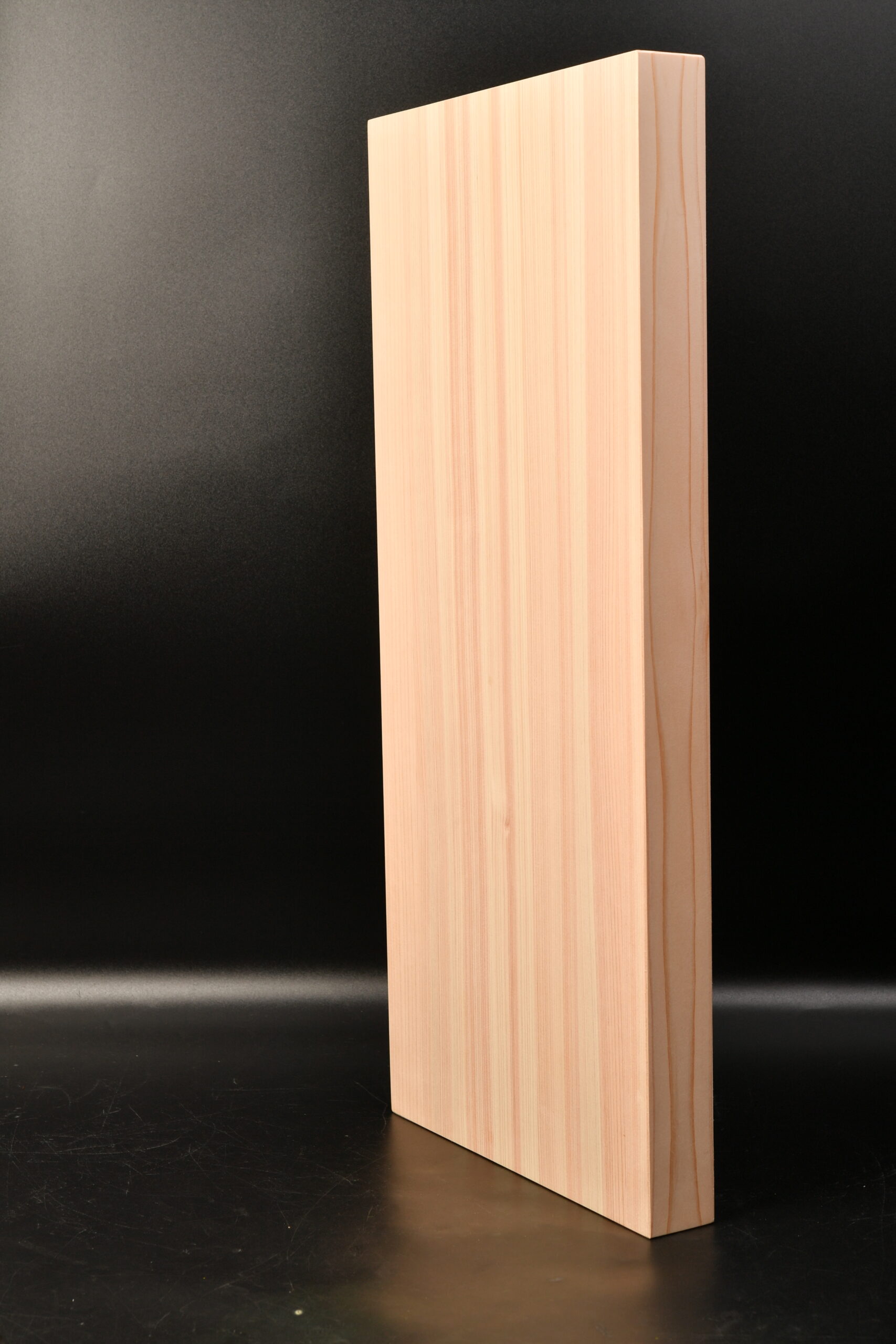 表裏の檜の模様は、素晴らしいですが実は、このまな板は、檜の集成材を使っていますので1枚物より反りに強くお値段は、お手頃価格。