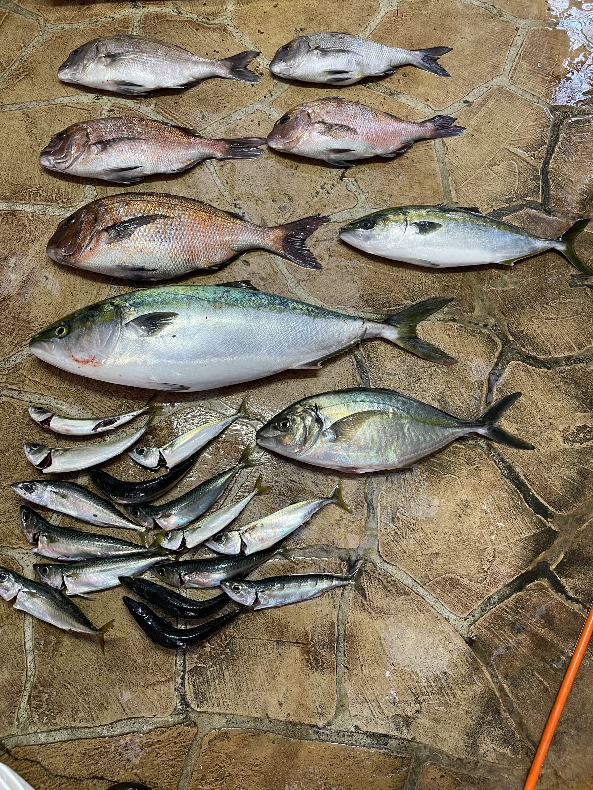 終了後、少ないですが大鯛とデカメジロ、デカシマアジを釣ったので公式ブログとインスタ用の写真を撮って頂きました。