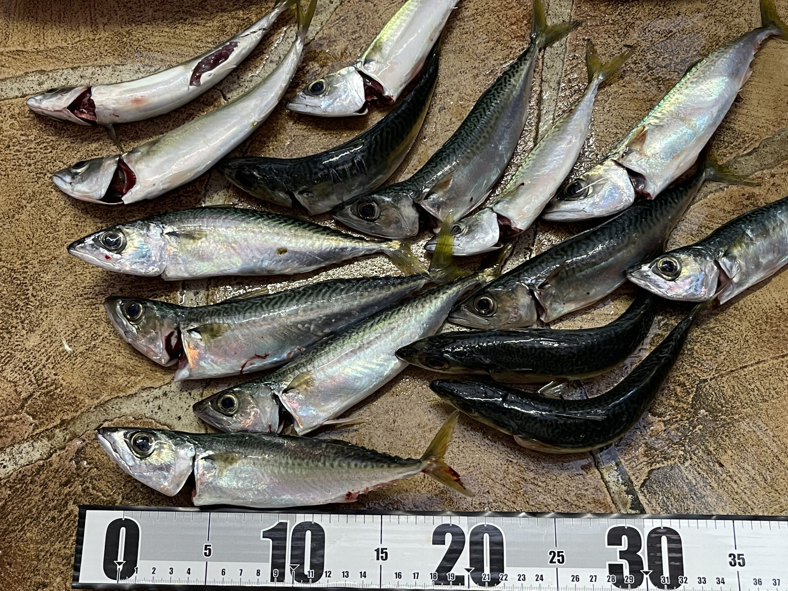 パパ:真鯛2匹 2点、シマアジ1匹 2点、ハマチ1匹 3点、サバ15匹 0点、合計6点