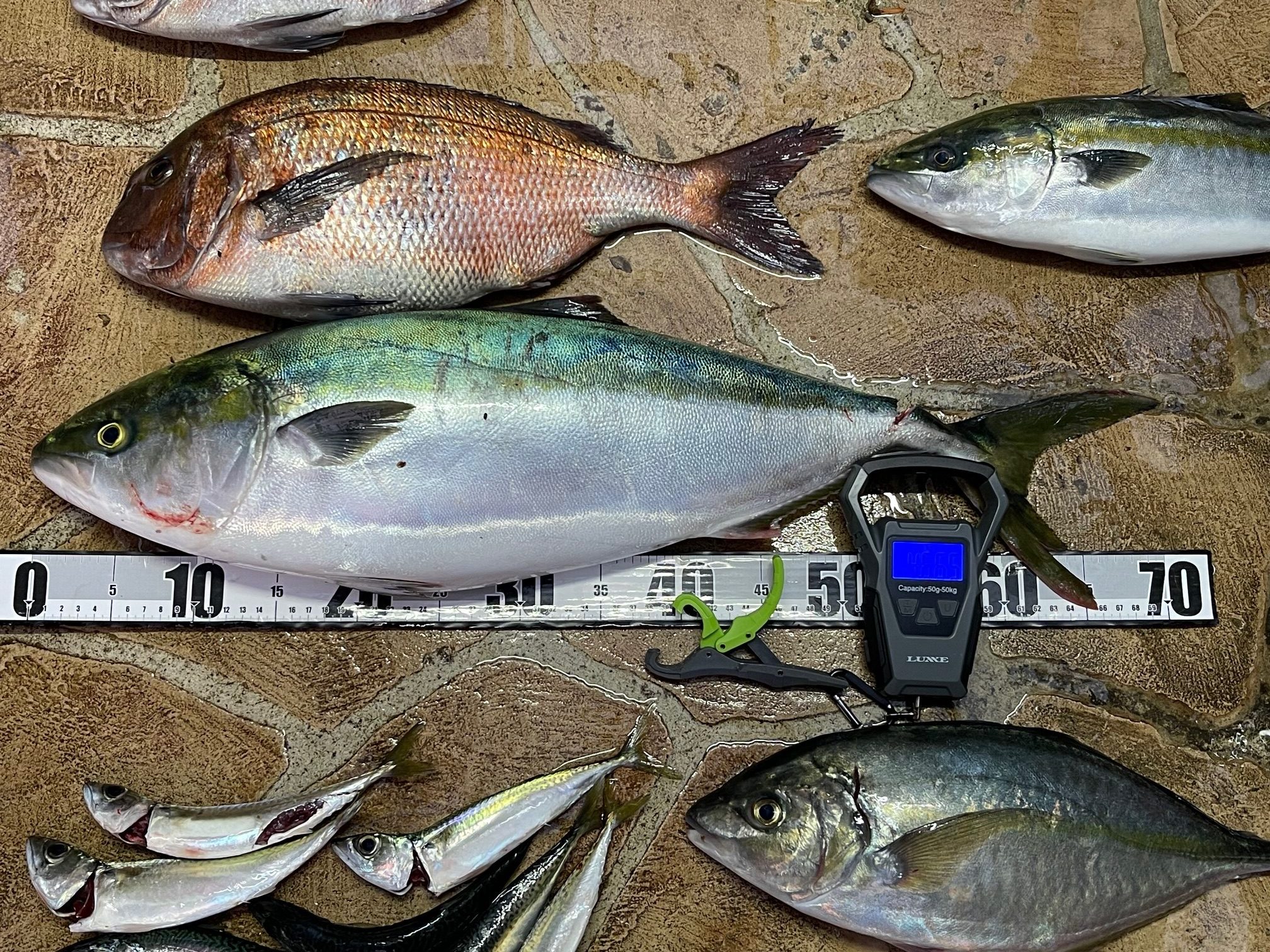 ママの釣った大鯛は、49cmでジャスト2kgでした。