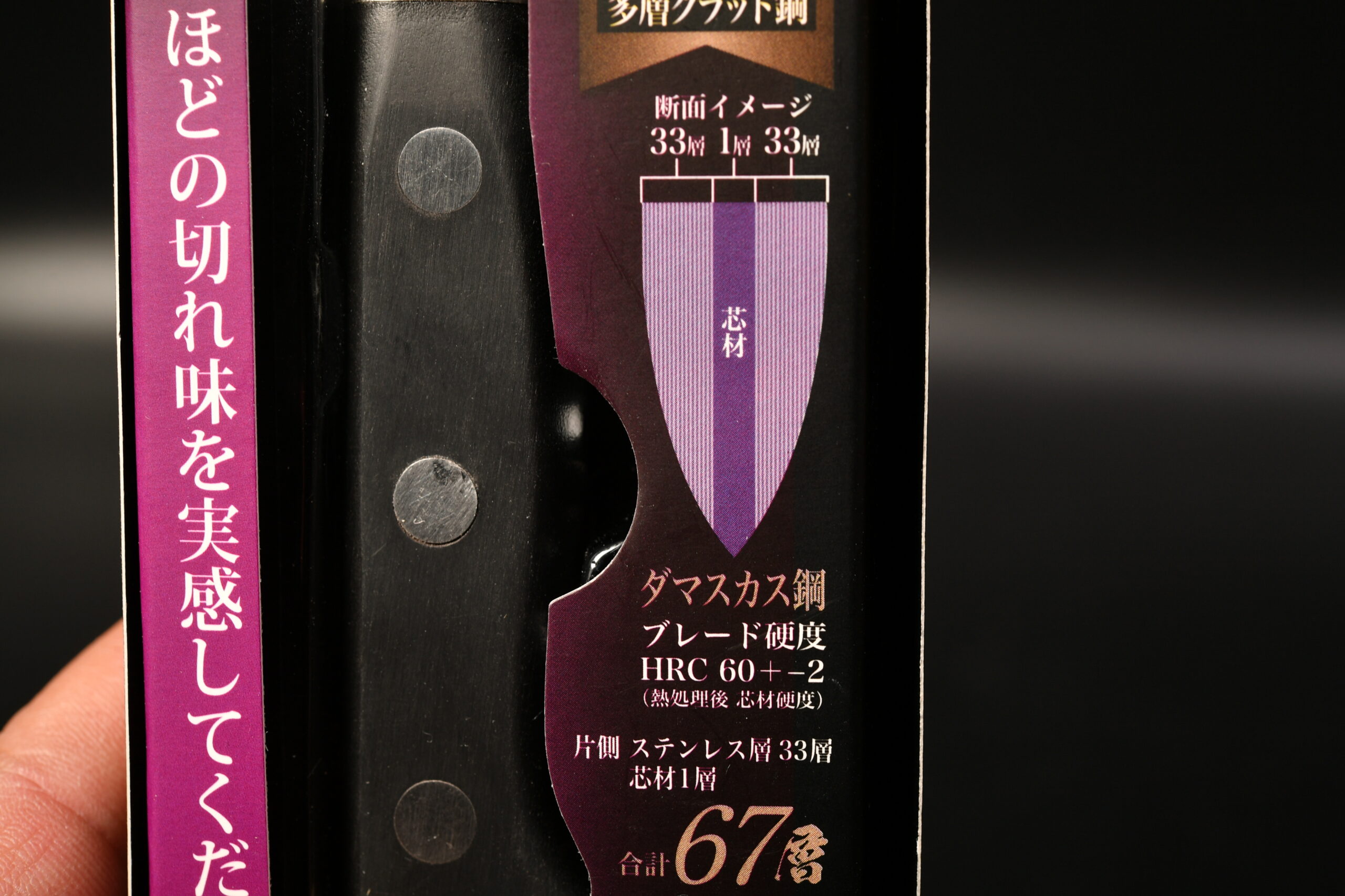 そしてオマケで67層ダマスカスと言う事ですが包丁の世界、ダマスカスだから切れ味が良いと言う事で無く切れ味は、芯材で決まりダマスカスは、あくまでも見た目の演出だとパパは、思います。