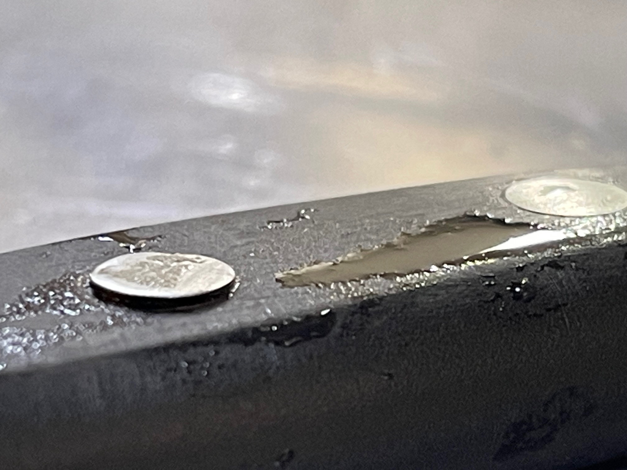 パッケージに固定されている両面テープを剥がすと真ん中のカシメが浮いていました。