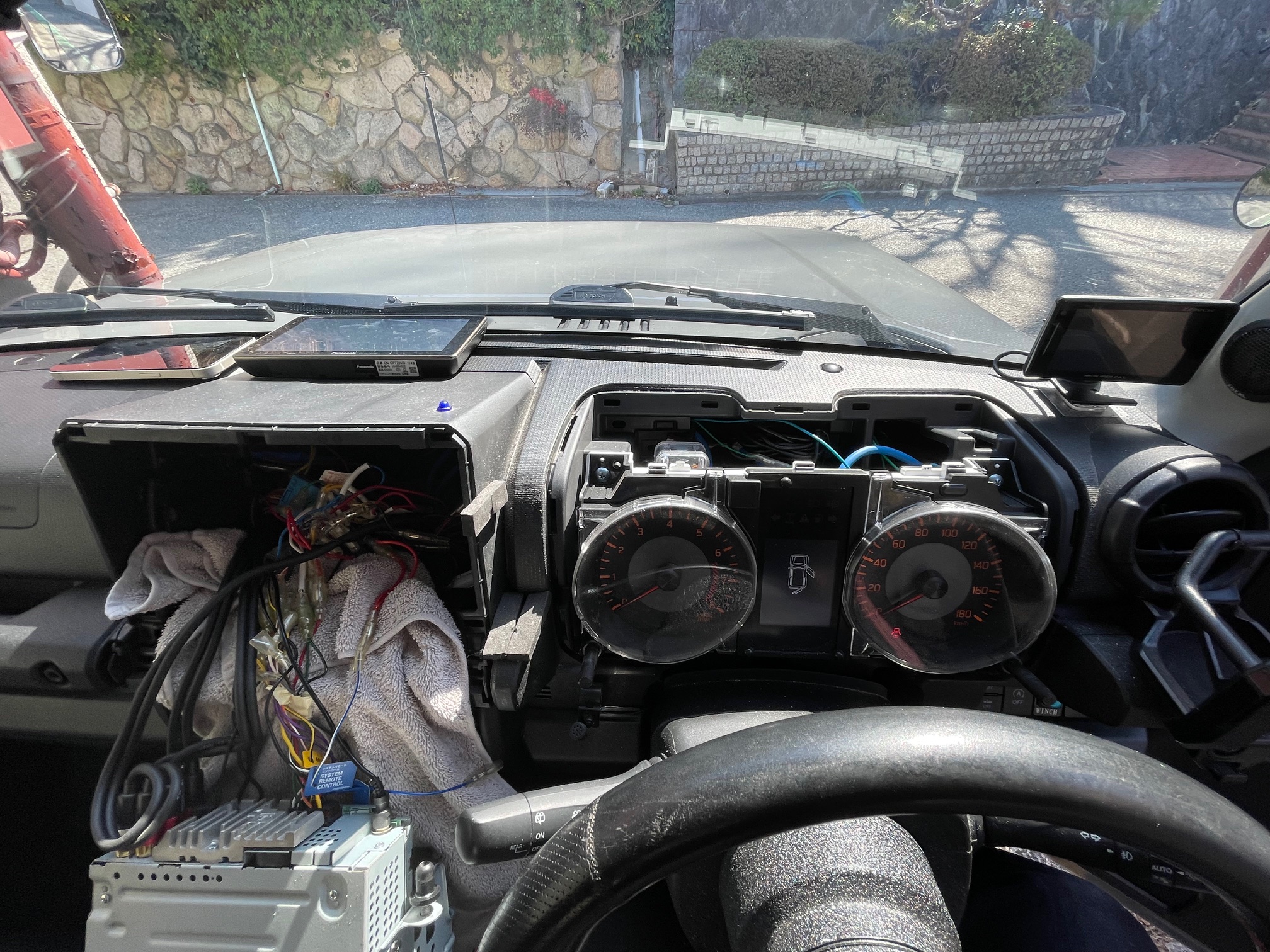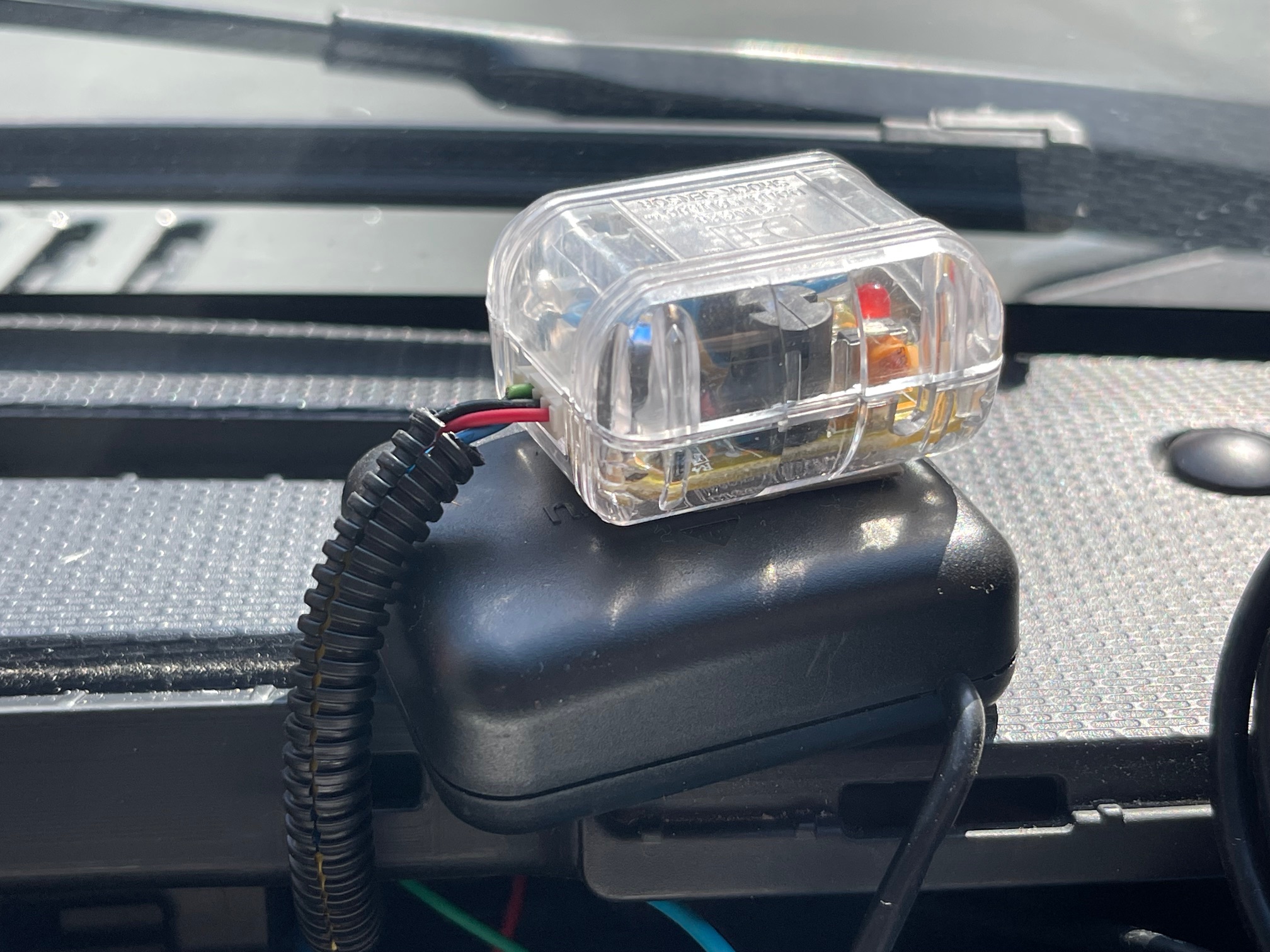 Super Cat Z290CsdのGPSアンテナは、メーター上に設置していたのですがその上には、セキュリティーの振動センサーも。