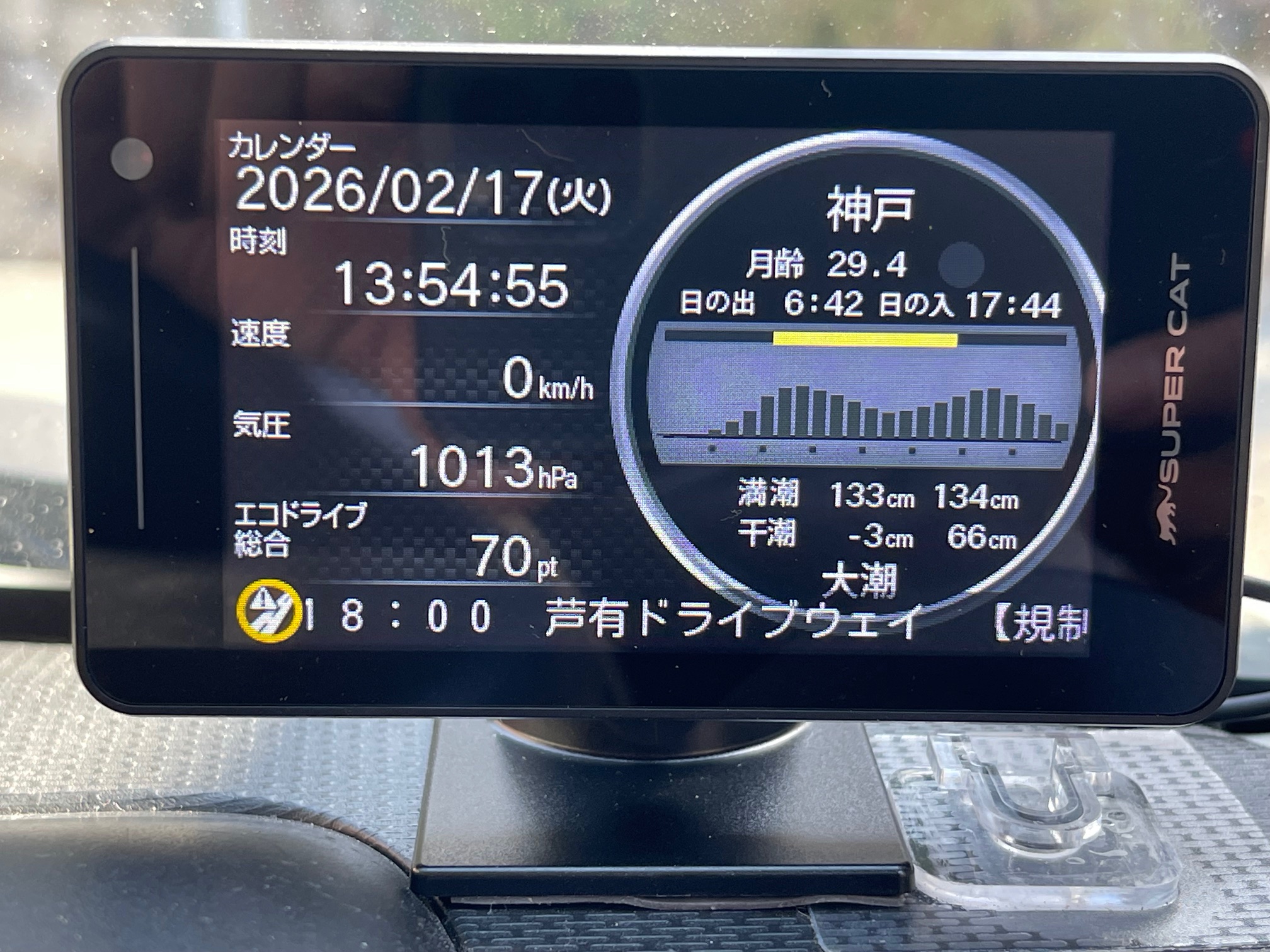 新しいユピテルは、待ち受け画面にタイドグラフ出るんや!