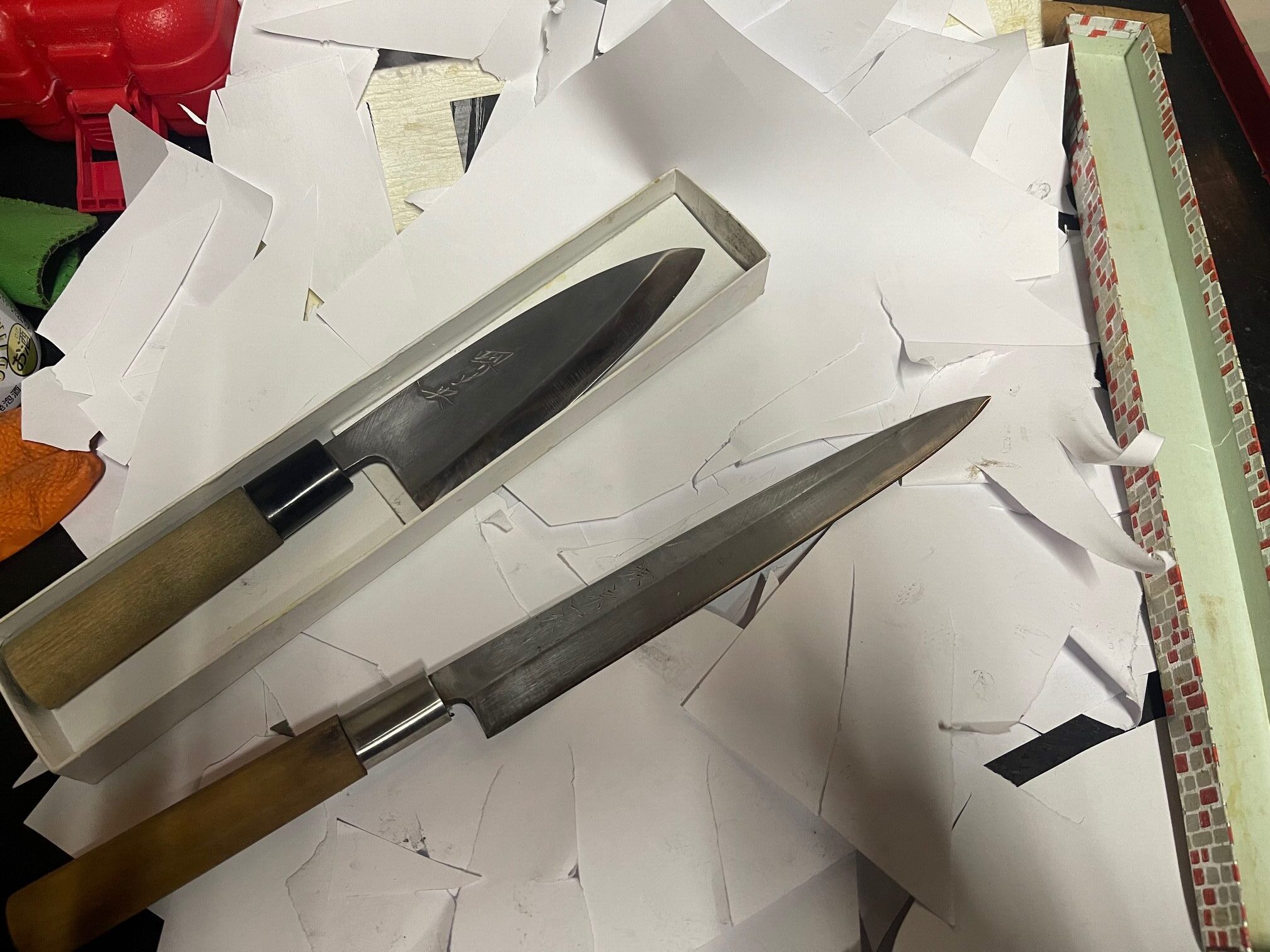 柳刃は、細かい刃こぼれ2カ所有りましたが今回は、刃こぼれ直さずです。