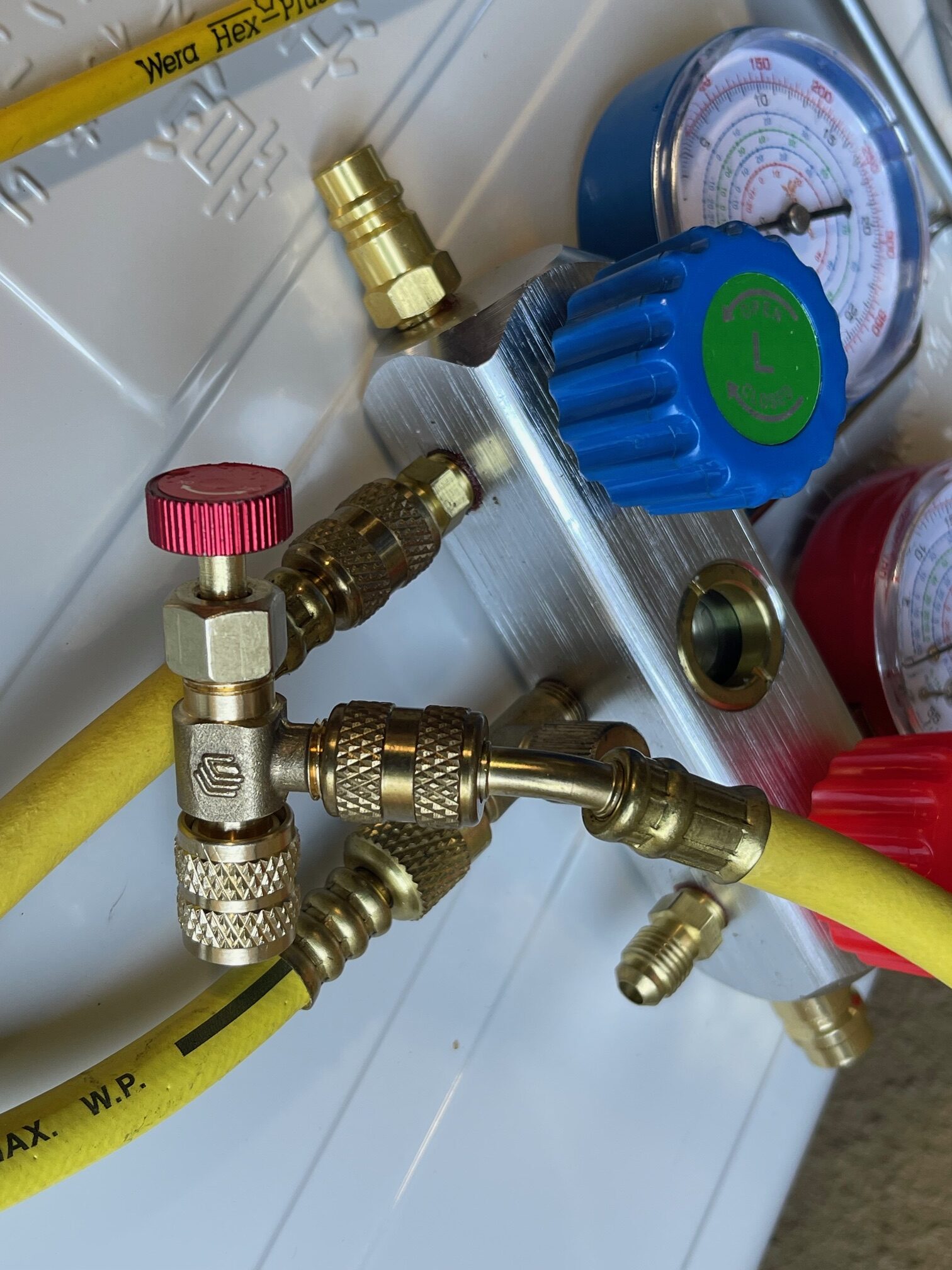 十数年前に購入したエアコンのチャージバルブですが最近の冷媒R410aやR32を使った室外機では、ネジ径が違いますので使えません。