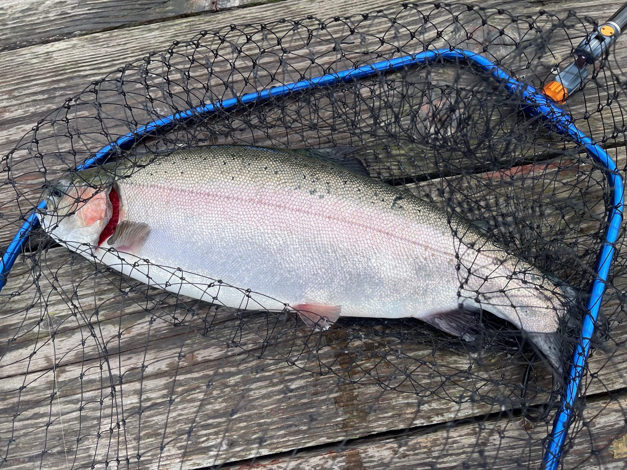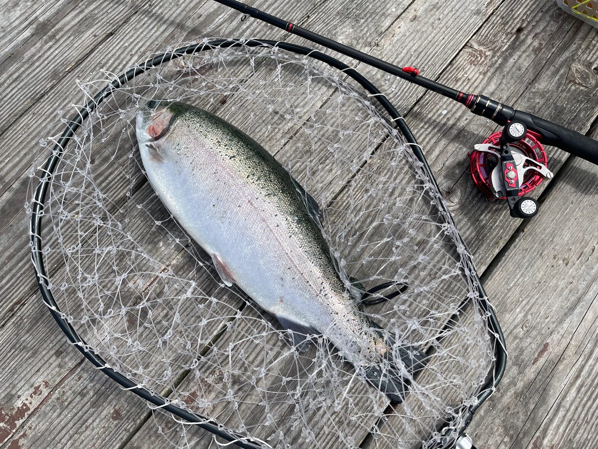 ヘチ竿+方軸リールでサーモン釣っているのは、たぶんワシだけやろうな。