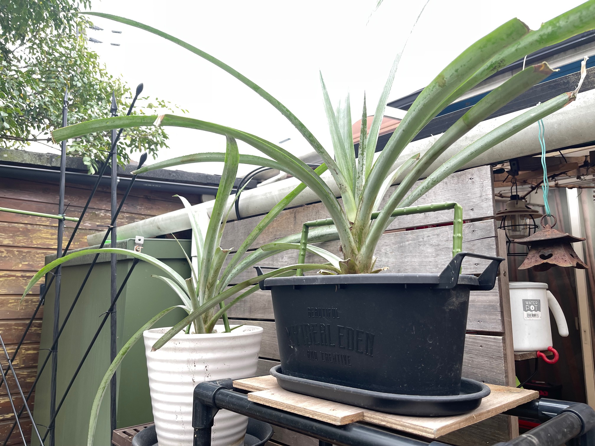 そうそう。冬の間室内飼育していた台湾パイナップルも外に出しました。