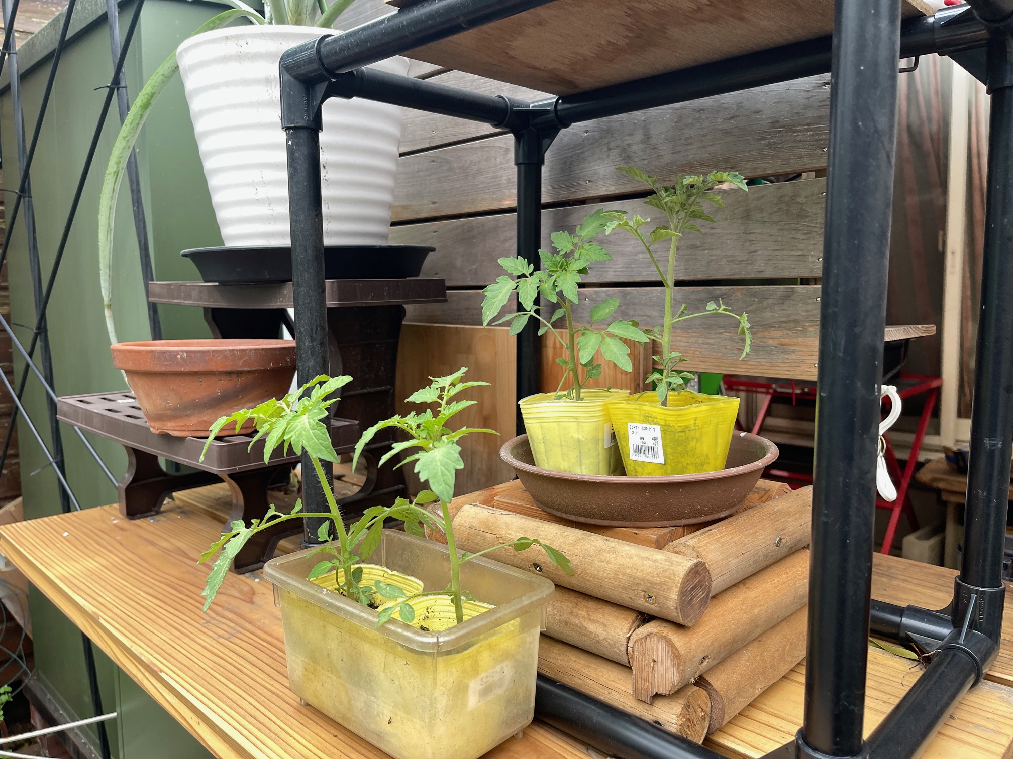 昨日、ホームセンターに用事が有って園芸コーナーを見てみたら黄色ミニトマトの苗が1個98円で売っていましたので4個購入。