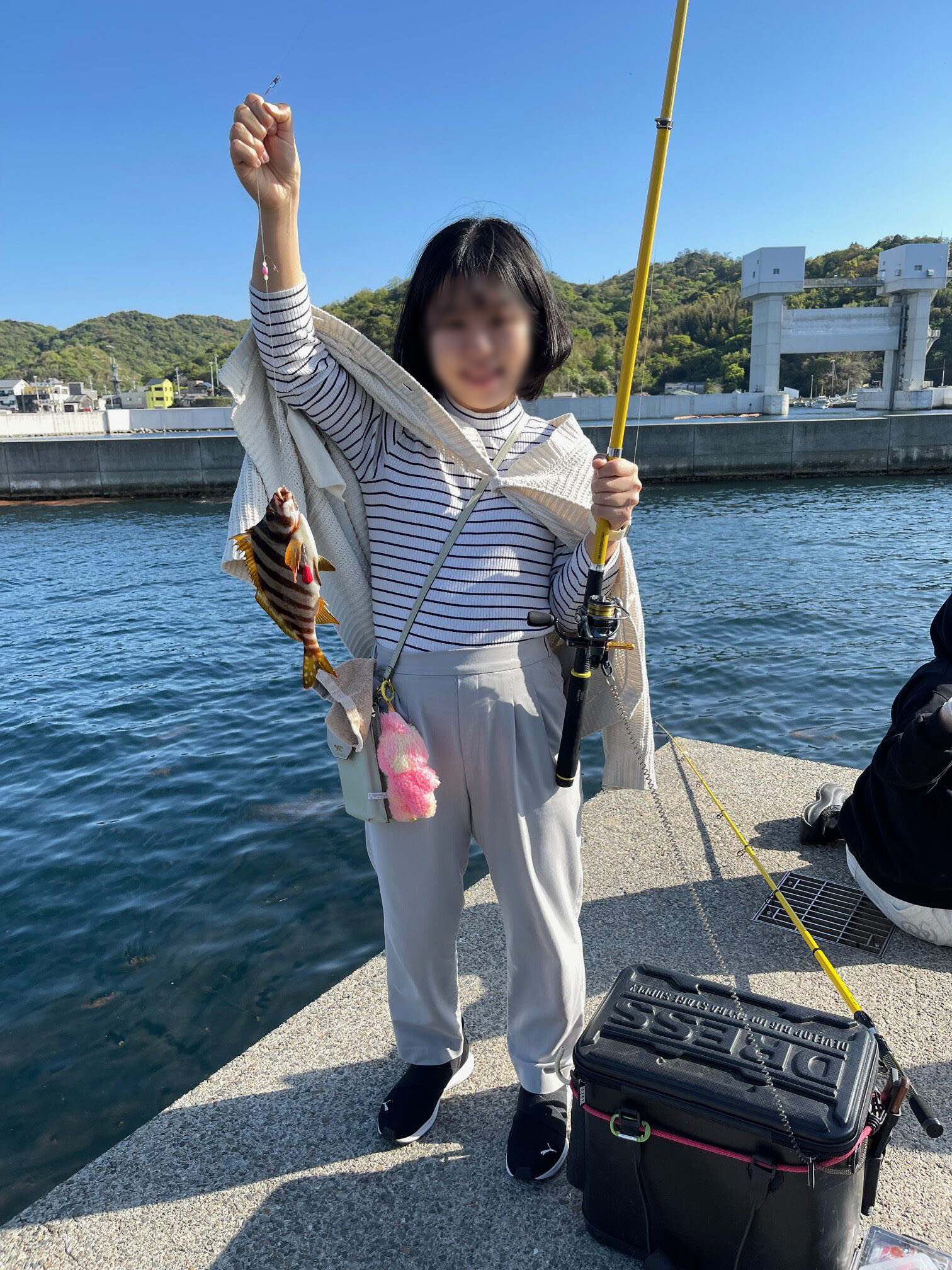 三女もお持ち帰りサイズのハゲ(カワハギ)をGET!